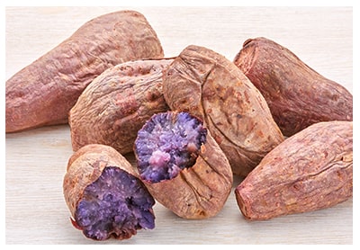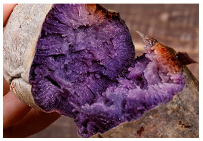 紅芋はポリフェノール系の成分・アントシアニンや食物繊維がたっぷり含まれており、無添加・無着色の身体にやさしい自然の食材です。