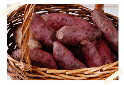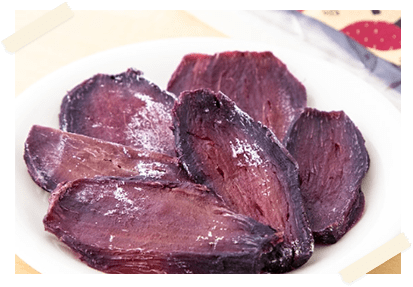 紅芋はポリフェノール系の成分・アントシアニンや食物繊維がたっぷり含まれており、無添加・無着色の身体にやさしい自然の食材です。